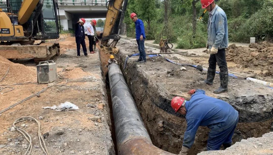 為了使黨史學習教育活起來,市供水總公司聚焦主責主業(yè),今年初荊門市給排水安裝工程公司會同市規(guī)劃設計院、市建管中心在長城汽車產(chǎn)業(yè)園現(xiàn)場進行勘察,確定管位和施工方案。2月18日方案出臺后,工人立即正式進場施工。因近幾月雨水天氣較多,項目部及時調(diào)整施工方案,增加施工人員,多次協(xié)調(diào)溝通武漢高速主管部門和當陽高速路政部門,申報下穿高速公路段的管道施工方案,爭取縮短審批時間,確保工程順利推進、按期完成。