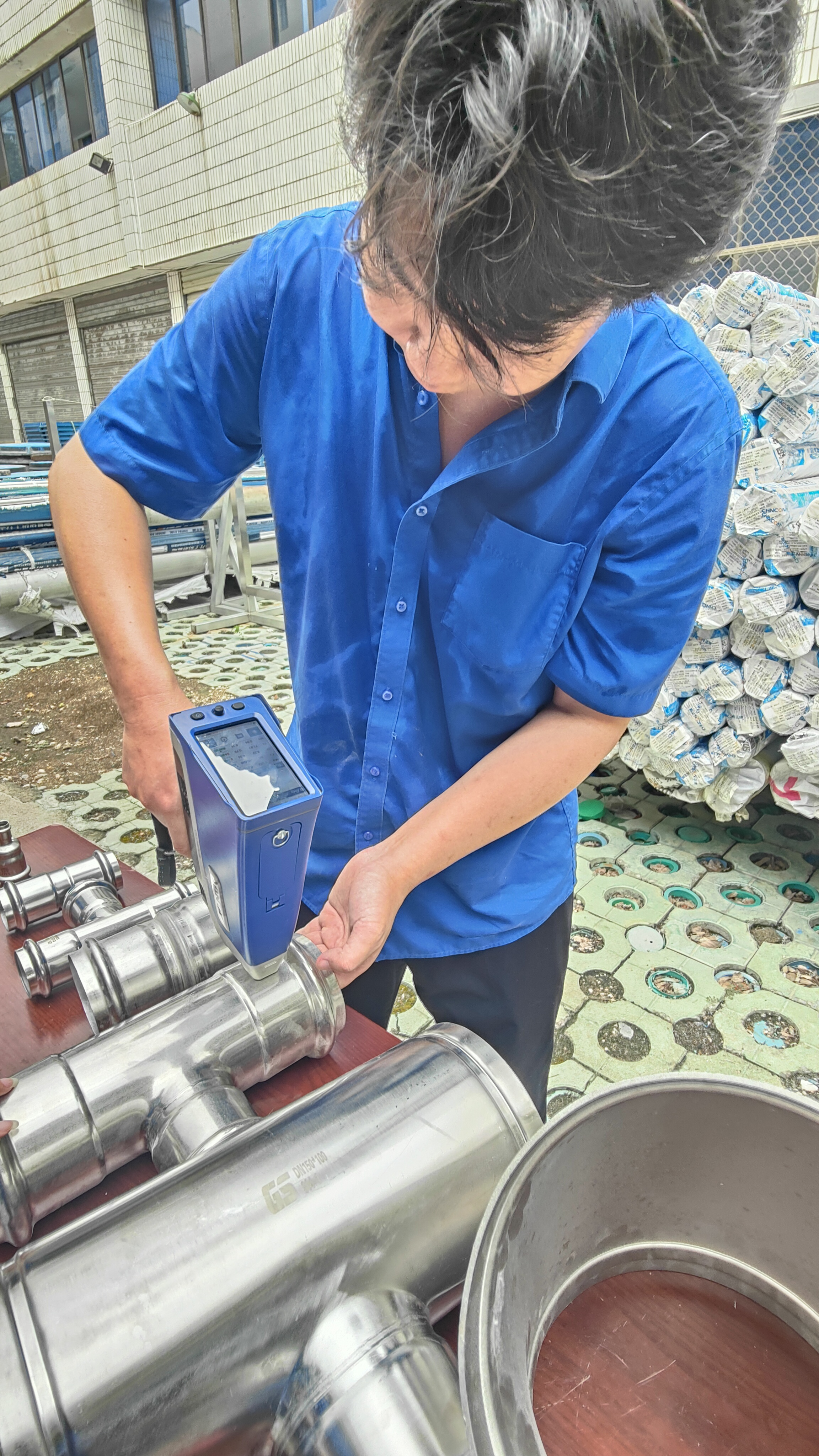 在實(shí)操比武環(huán)節(jié),參賽人員按流程對各類型號管件進(jìn)行鑒別與檢驗(yàn):運(yùn)用手持光譜儀檢測不銹鋼材質(zhì)成分,確認(rèn)是否符合不銹鋼304標(biāo)準(zhǔn);使用測厚儀測量管件壁厚,嚴(yán)格把控尺寸偏差;用卷尺測量長度,核對與標(biāo)準(zhǔn)值的誤差。整個比武過程規(guī)范有序,參賽人員嚴(yán)謹(jǐn)操作,展現(xiàn)了扎實(shí)的驗(yàn)質(zhì)功底。