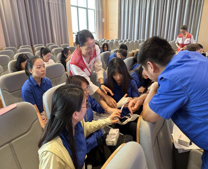 本次培訓(xùn)內(nèi)容豐富實用,既涵蓋國際紅十字運動基本知識、救護(hù)新概論等理論內(nèi)容,又聚焦現(xiàn)代救護(hù)技術(shù)開展實操訓(xùn)練。培訓(xùn)中,講師系統(tǒng)講解心肺復(fù)蘇與AED操作技能,通過現(xiàn)場演示、手把手指導(dǎo),幫助參訓(xùn)人員熟練掌握這一關(guān)鍵生命救護(hù)技術(shù);在創(chuàng)傷救護(hù)環(huán)節(jié),不僅細(xì)致講解止血、包扎、骨折固定等基礎(chǔ)方法,還針對氣道異物梗阻、燒燙傷、踝關(guān)節(jié)扭傷等常見意外傷害的現(xiàn)場處理展開深入教學(xué)。