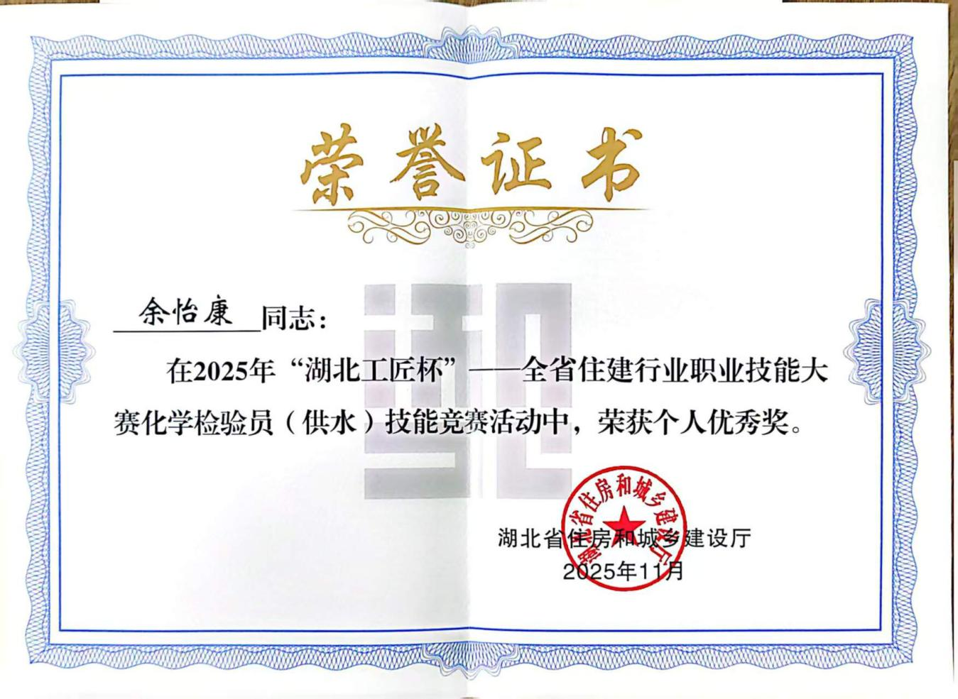 近日,荊門水務(wù)集團(tuán)成功獲評(píng)第五屆全國城鎮(zhèn)供水排水行業(yè)職業(yè)技能競賽湖北省選拔賽道德風(fēng)尚獎(jiǎng)。集團(tuán)參賽選手不負(fù)眾望,取得佳績。詠泉公司付傳艷、余怡康榮獲個(gè)人優(yōu)秀獎(jiǎng),排水公司李治洋獲得第七名。