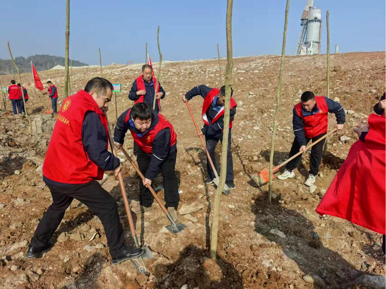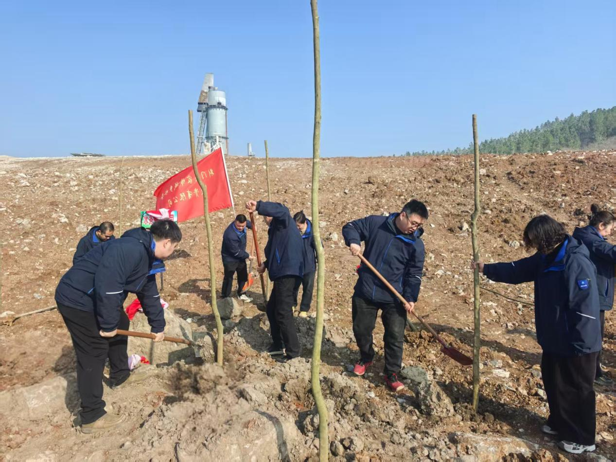 屈家?guī)X水投公司14名干部職工們分工協(xié)作,揮鍬鏟土、扶苗填坑、提水澆灌,每一個環(huán)節(jié)都一絲不茍,干勁十足,現(xiàn)場一片熱火朝天的景象。經過大家的共同努力,一株株新栽種的樹苗在春風中昂然挺立,為昔日礦山披上了嶄新的綠裝,為初春的屈家?guī)X增添了勃勃生機。